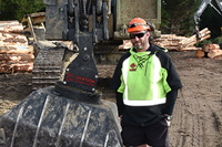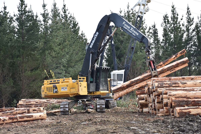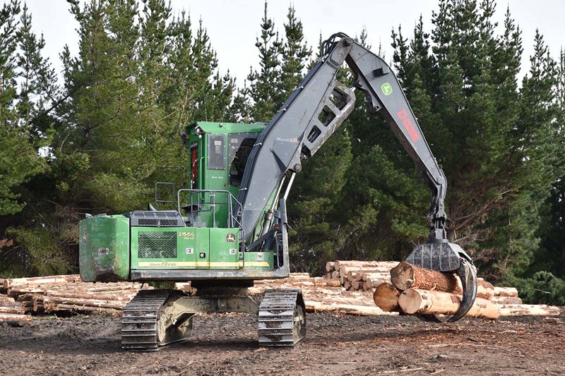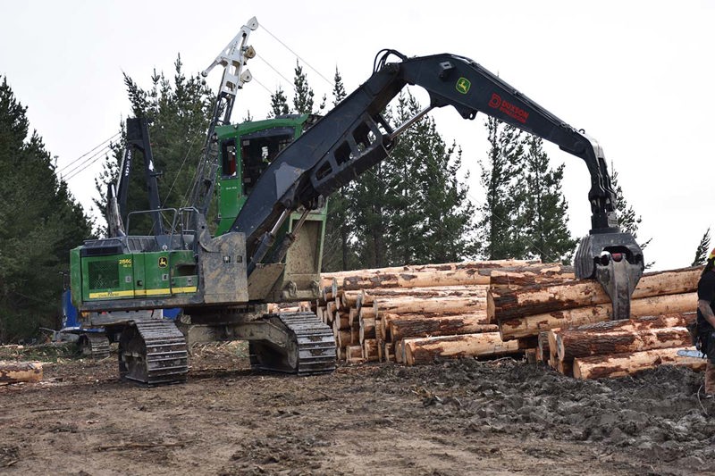 When it comes to bunching grapples, big is good and tough is even better. The new Duxson BX1100 is both. It’s hooked up to a John Deere 2156G XD LC at Nathan Taylor’s Mechanised Cable Harvesting (MCH) windthrow salvage operation near Nelson. First impressions are that this grapple is an armoured vehicle. Having used and accidentally abused a few bunching grapples in my time, and repaired and re-engineered them as well, this one answers a lot of questions with well-placed steel plates, ribs welded in for rigidity and cleverly recessed pin bolts. The high-strength alloy steel plating both strengthens the frame from the incredible leverage the ram exerts when wrestling logs, and protects the hoses and rotator from stray logs that have been known to end up in there, especially when shovelling. And the jaws are designed to optimise performance during loading, sorting, shovelling and bunching. But more about that later.We enter the forest and drive up behind a Borlase Transport DAF log truck that is stopped to await approval to enter the MCH site for loading. Iron Tester, Brady Clements, knows the truck driver from his health and safety business and leaps out for a chat while we take in some of the devastation from recent storms. MCH is here in Golden Downs Forest with its Log Champ 650 but it seems this country is pre-tracked for ground based harvesting.