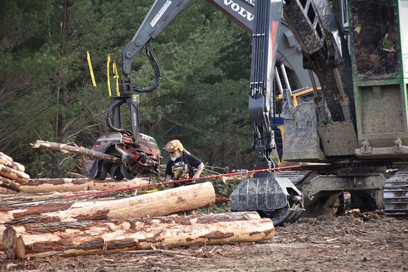 “That’s from the first rotation,” Brady says. “They tracked all that with D6’s back in the Forest Service days and logged it with D6’s, so that infrastructure is all in place, they just reuse those tracks usually. Given that it’s winter and wet, it’s a good call to get the hauler into this ground to get the downed logs out quicker and with less ground disturbance.”
